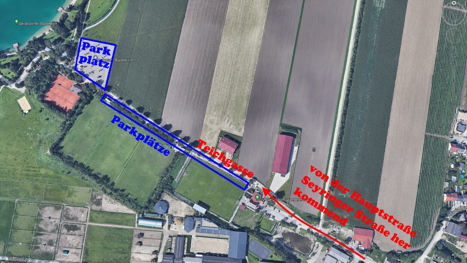 Der Parkplatz direkt vor der Badeteichkassa wird als Laufstrecke genutzt, genauso wie die Schulgasse und sind deshalb freizuhalten!